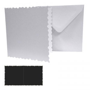 Pack contains 5 x 5" x 5" square white 300gsm, deckle edged cards & 5 x 5" x 5" square white envelopes.