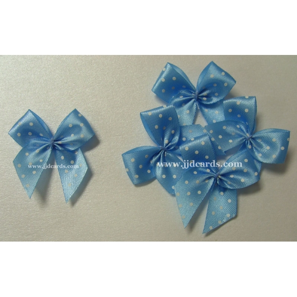 10mm Dotty Satin Bows - Baby Blue with White Spots